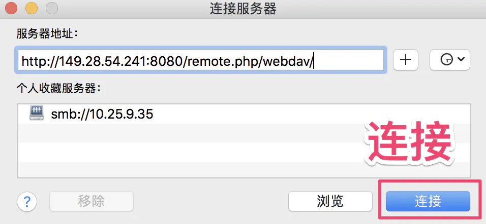 其实挂载同步盘后, 你可能发现自己的服务器流量还是太小, 传输大文件,如果断掉就会需要重传, 我这里推荐一个工具-Transmit。Transmit 支持 webdav 协议, 可以让我们在网络状况很差的情况下,也能进行稳定同步。