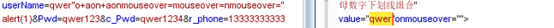 在特殊符号中不断的测试,发现“as+onmouseover=a” 会被直接清除掉只剩下一个“a”,但是as+aonmouseover=a”,则保留下了“asa”,直接把前后的内容拼接上了。