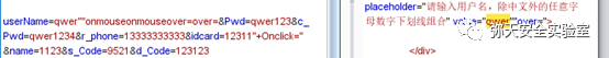 ”onmouseover=”以及”onmouseover=”前面的字母给直接清除了,但是并没有清除掉双引号,所以我猜测应该是用的正则匹配的字母。