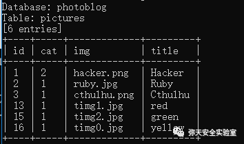 sqlmapoutput192.168.17.140dumpphotoblog目录下的pictures.csv文件为拖库导出的相应表数据