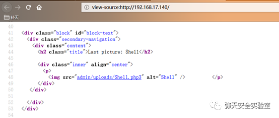 4)访问上传后文件所在界面,通过查看源码可以发现文件所在位置