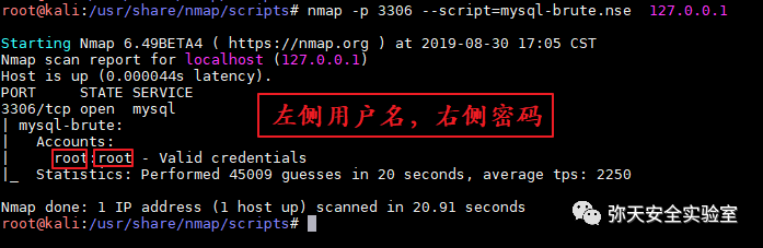 看到带有暴力破解字样的脚本:mysql-brute.nse
