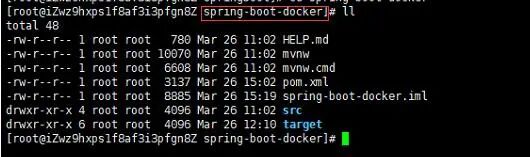 我现在已经将项目拷贝到服务器中,我们现在需要将它打包到docker中,借助maven实现打包,如果还没有安装maven的,请先安装maven,切换到项目的根目录