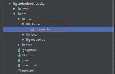 3.新建docker文件在main目录下新建docker目录,然后在docker目录下创建dockerfile文件,不需要后缀名。