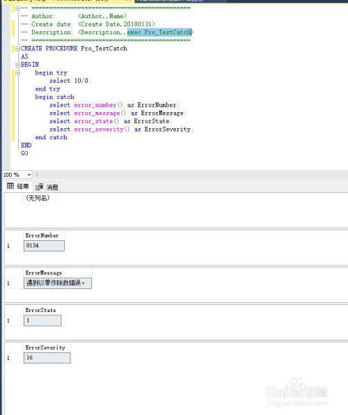 输入你的存储过程名称,然后写入程序异常处理机制块。