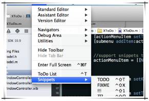 之前设置TODO 和标记某处??? 我都是手敲一个特定的符号,然后找的时候再去全文搜索。 有了这个插件,可以用快捷键添加TODO 和 FIXME (额这里如果用代码块也是可以相同实现的)。然后提供了TODOList 快速查看自己各处的标记。等于是省去了一个搜索的步骤。 但是不足就是,ToDoList的对话框是一个悬浮的而不是像上面的SCXcodeMiniMap或是GitDiff那样是嵌入在xcode里面的,这样在来回点的时候xcode的焦点和对话框的焦点会来回切换,虽然你是置顶的但还是比较影响体验。我用搜索的话就不用来回切焦点了。 但是这个插件本身还是很不错的。