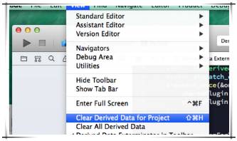使用此插件之后,view菜单里多了一些操作,可以一键删除Derived Data。有时候在调试,启动图,launch screen,navgationBar appearance,之类的功能可能需要经常删derived data来调试。以前的方案应该是需要打开xcode偏好 locations 里面去删除,现在方便了不少。 不足之处就是删除这个项目的Derived Data 和删除All Derived Data 直接放在一起,手一滑就点错了。有的人电脑性能慢,项目大你一下把别的项目的Derived Data也删了 以后重新Build一下就太慢了。还有记得以前有小工具就是能够把正在运行的工程的主目录在find中显示,用来调试数据缓存的,这个库如果集成了这个功能就更好了。
