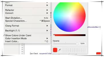 在使用colorWithRGB的时候,可以点出一个颜色选择框直接选择颜色,但是这个功能在使用了Wonderful或是企业级App里用处不大,因为是个项目都有视觉规范,应该都写成一个特定的宏了,就算没有视觉规范,那好歹也有个RGB(r,g,b,a) 这种宏吧。 [UIColor colorWithRed:233/255.0 Green:213/255.0 Blue:12/255.0 alpha] 这种代码还是很不美观的。如果是测试demo之类的用这个插件可以。