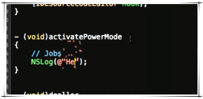 功能和上面的相似并且更狠,还带响声。但是让xcode变卡的问题同样存在。 而且这个插件比上面高端之处在于迸溅的火花的颜色和编辑位置的代码颜色相同,作者找到了配色方案返回颜色的私有api得到代码颜色。 迸溅效果更接近sublime上的效果。有人因为又用机械键盘 又带响导致手被剁了,所以这个也慎入。