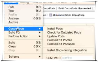 11、cocoapods-xcode-plugin pod相关的操作可以在xcode菜单进行