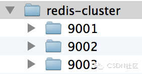 因为我们要启动多个 redis 实例,虽然我们可以直接通过命令行来启动,但始终是不怎么方便的,所以我们先来新建三个实例目录,分别是9001,9002,9003,目录名就是 redis 实例的端口号。