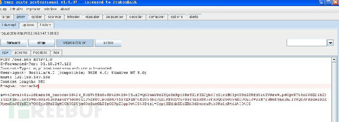 修改文件后,我们在看看菜刀-右键编辑,抓到数据包