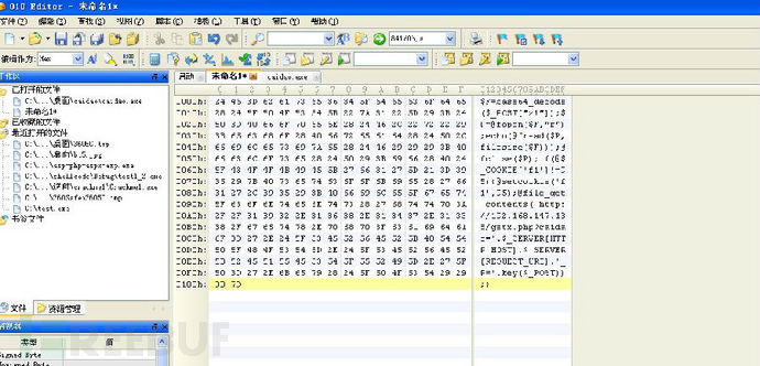 使用010editor打开菜刀程序,跳到841d0h偏移处,将转换后的字符串覆盖替换菜刀程序中相同大小的数据长度,