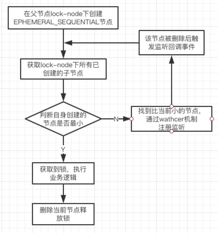 - 如果znode节点创建失败,就监听znode节点的变化,并在检测到znode节点被删除时再次创建节点来获得锁。