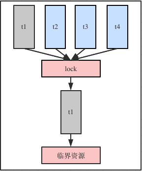 画外音:锁是进程内的一个数据结构,将临界资源的冲突转变为对锁结构的冲突。