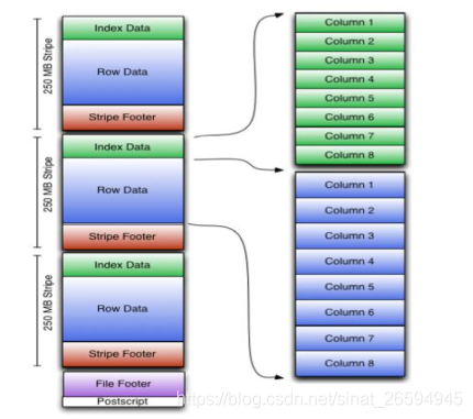 一个orc文件可以分为若干个stripe 一个stripe可以分为三个部分