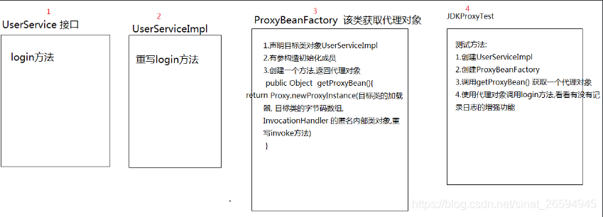 Object invoke(Object proxy, Method method, Object[] args) /*当代理对象调用原来的目标方法的时候就会执行InvocationHandler 中的invoke方法 参数1: Object proxy 代理对象 参数2: Method method 当前调用方法的对象 参数3: Object[] args 实际传递的参数*/需求:完成用户登录,记录日志