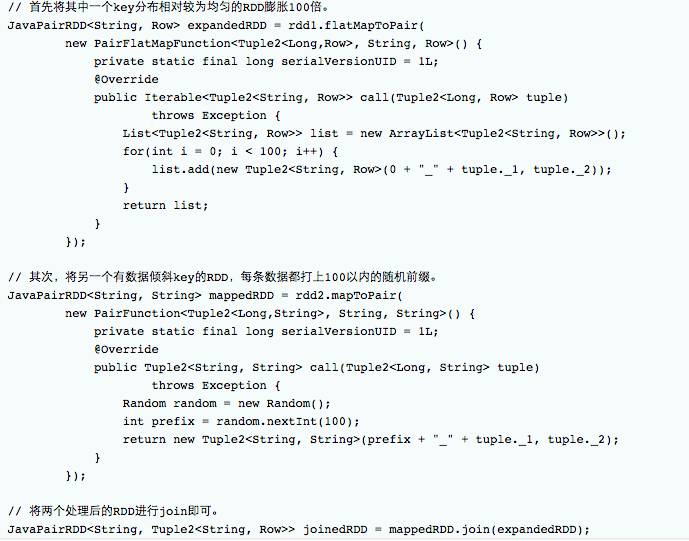 该方案的实现思路基本和“解决方案六”类似,首先查看RDD/Hive表中的数据分布情况,找到那个造成数据倾斜的RDD/Hive表,比如有多个key都对应了超过1万条数据。
