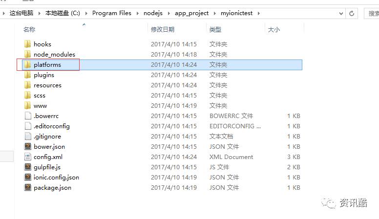 myionictest 就为项目名称,进入myionictest 这个文件夹: