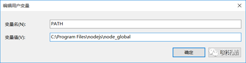 ⑤、进入环境变量对话框,在系统变量下新建”NODE_PATH”,输入”C:ProgramFiles