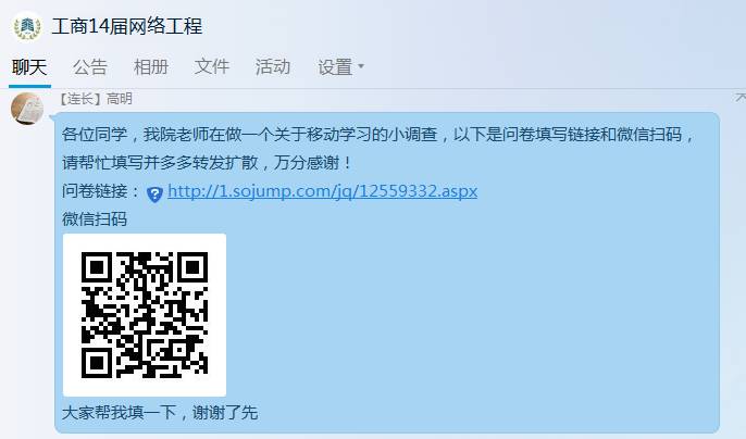 近段时间,看高明老师在专业群转发问卷调查的链接。