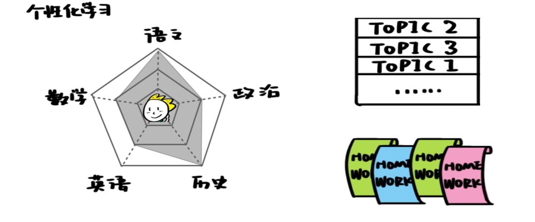 个性化学习,通过收集日常学习和作业信息,分析学生的知识点掌握情况,老师可以根据分析结果制定教学计划,针对不同的学生布置个性化作业;