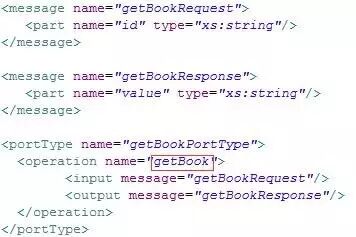 没有玩过Web Service 的不用完全看懂它,它描述的也是一个getBook这样的操作, 输入是一个id ,类型是字符串。