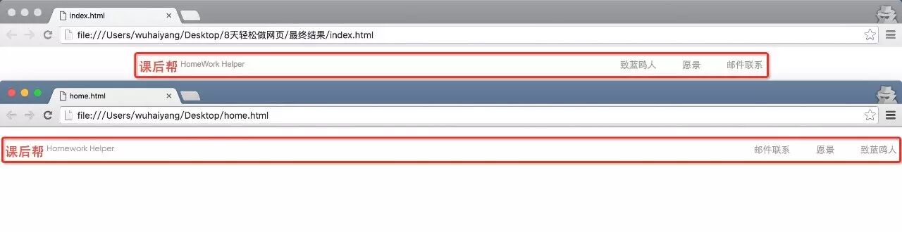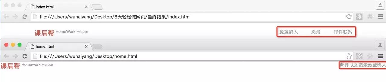我们发现理想效果是左边的课后帮与后边的超链接都是居中的状态,并且随着我们更改浏览器大小的同时,始终保持居中的位置。