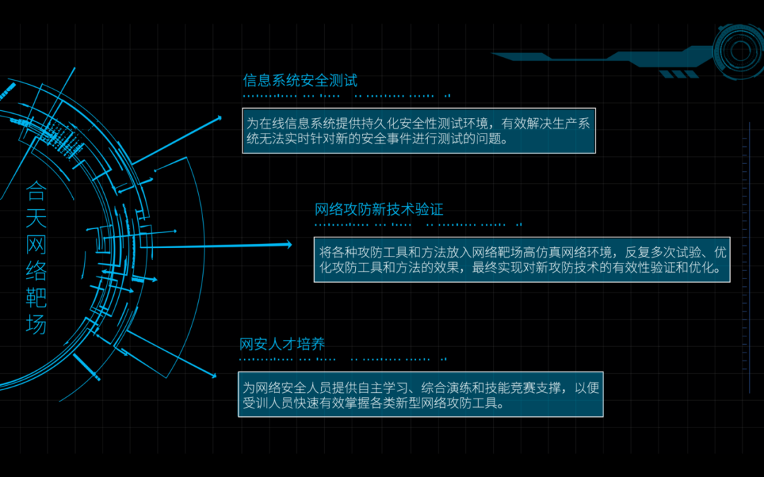 3) 科研验证:网络空间安全新技术、新装备的的研究与验证。