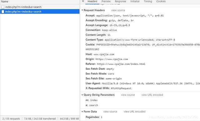 所以再翻页爬取的时候只要改变Pagelndex参数就可以了