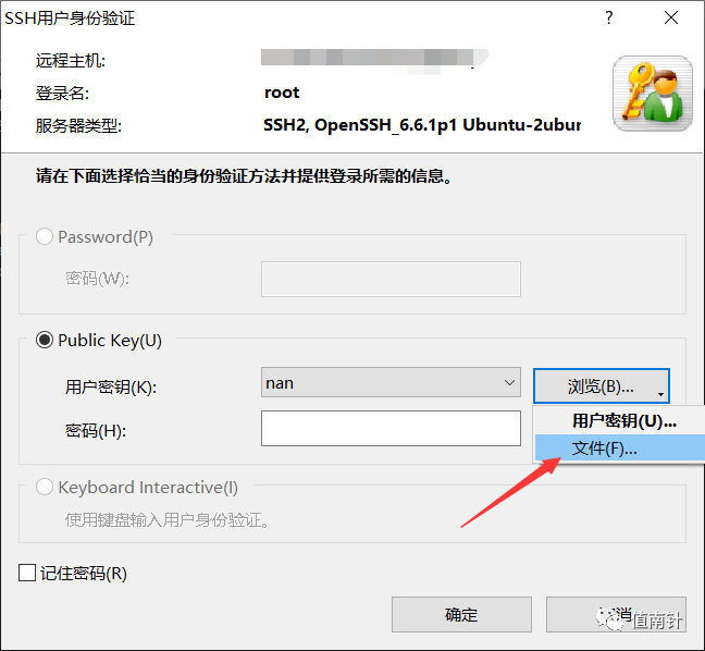 使用密钥对文件链接,选择刚下载的那个密钥对文件。然后确定。