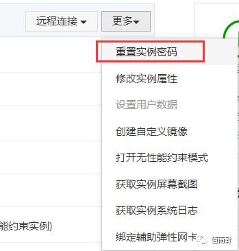 点击上图实例ID蓝色字体进入实例详情,点击更多,先修改下实例密码。