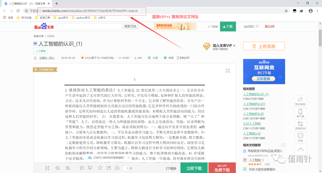 1:在百度文库(以这个百度文库为例子)找篇论文,该篇论文为VIP免费,下载需要下载券。直接使用冰点下载器下载该篇论文。复制这篇论文的网页地址。经过测试后,这个下载器可以下载“VIP”付费专享,和付费文档。