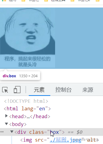 快看,并没有给box高度图片就把盒子撑开了,因为背景颜色显现了。