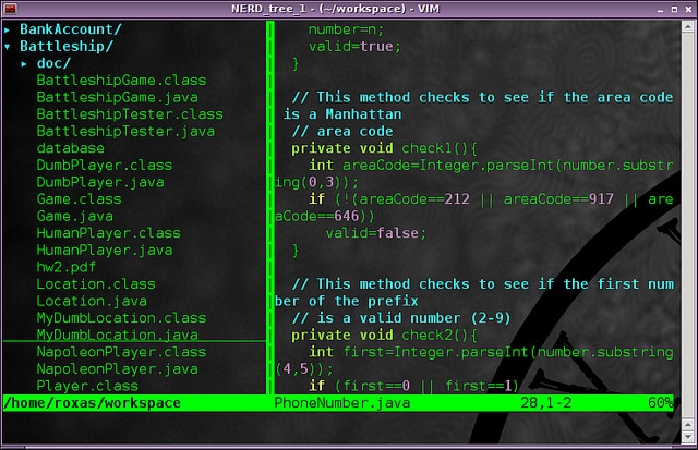 管理一个大的项目时,把代码分散到不同的文件里面是非常好的主意。也是一个基本的编码原则。NERDTree 是一个不错的可以直接在Vim里使用的文件浏览器,它可以让你随时想到所有的文件。