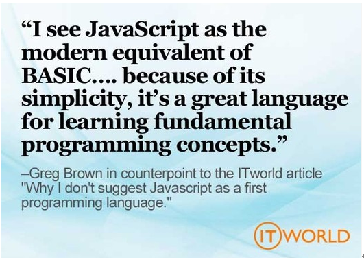 “于我看来,初学者应该先从JavaScript学起。它简单易学,面向对象,高容错性,重要的是它不会像其它丑陋的静态类编程语言那样脆脆鲨。”