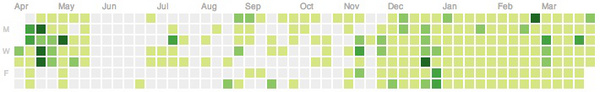 写代码成为习惯。 值得一提的是我并不是特别在乎上面的Github图形。我觉得这是这个实验最值得借鉴的一点:这是你为自己做的一个改变,而不是为了满足别人对你工作的评价。节食和锻炼也是一个道理:如果你不在乎提升自己,那么你永远都不会取得成功。