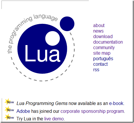 比如Lua语言的官方网站是http://www.lua.org,维基百科地址为http://en.wikipedia.org/wiki/Lua_%28programming_language%29