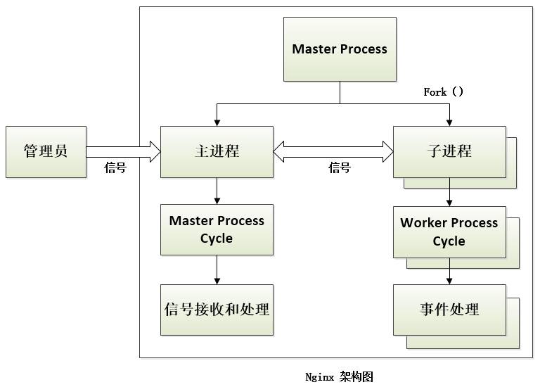 Nginx 服务器使用 master/worker 多进程模式。多线程启动和执行的流程如下:主程序 Master process 启动后,通过一个 for 循环来接收和处理外部信号;主进程通过 fork() 函数产生子进程,每个子进程执行一个 for 循环来实现 Nginx 服务器对事件的接收和处理。