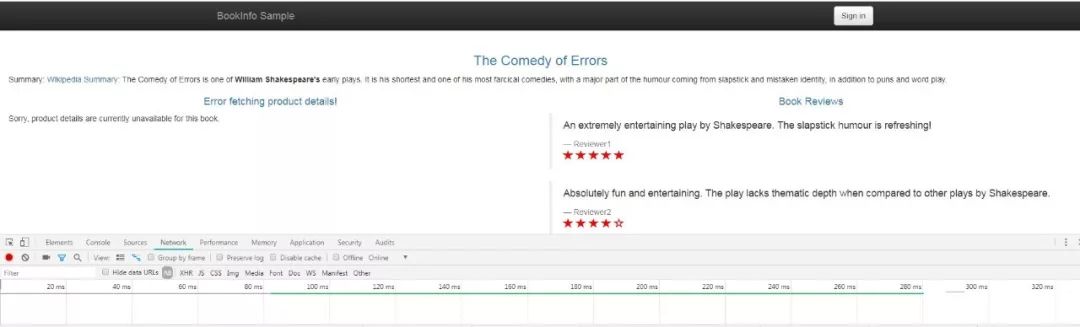 官方最佳时间Bookinfo应用,并且给Reviews配置了五个实例