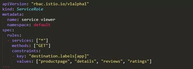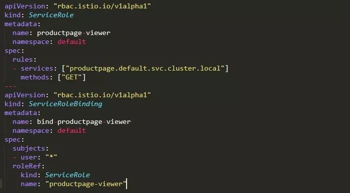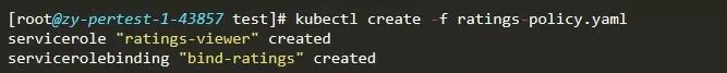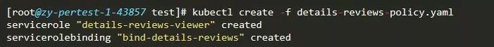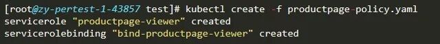 这条策略中创建了名称为 productpage-viewer的ServiceRole,它允许到 productpage 服务的读取访问,并创建命名为 productpage-viewer的 ServiceRole,将 productpage-viewer 角色赋予给所有用户和服务