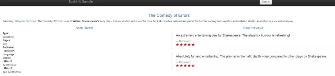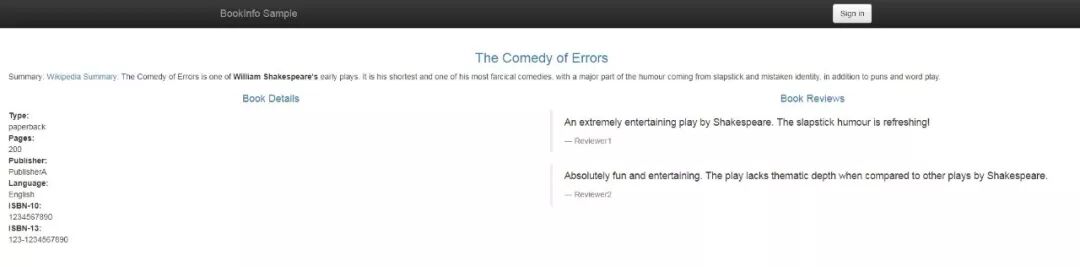用浏览器打开bookinfo的productpage页面,会看到完整的页面: