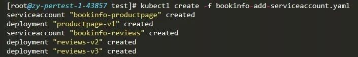 创建 Service account:bookinfo-reviews,并用它部署 reviews(其中包含 reviews-v2 和 reviews-v3 两个版本)。