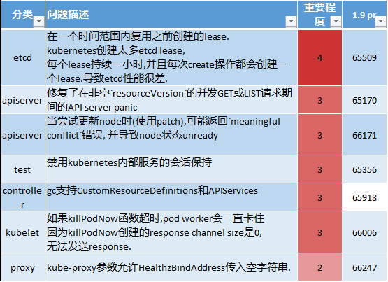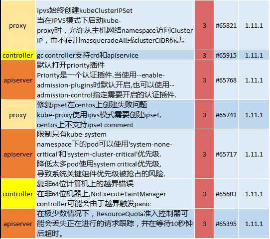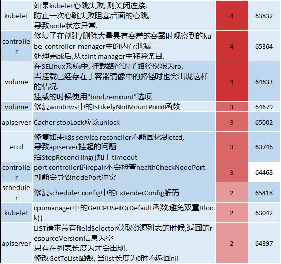 从上图可以看出,这段时间更新的bug fix干货满满,apiserver相关的就有4条,另外还有kubelet/scheduler/controller等核心组件相关内容。