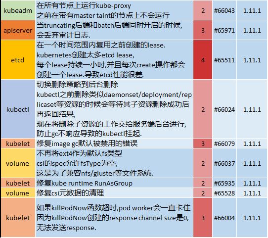 在本周的跟踪分析中,以1.11版本为例,共有24条bug fix,其中8条与Kubernetes核心内容相关。