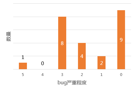 Bug fix严重程度统计,2及以下的bug fix有15个,严重程度为3的bug fix有8个,需要重点关注。