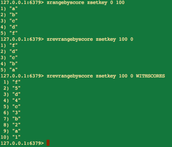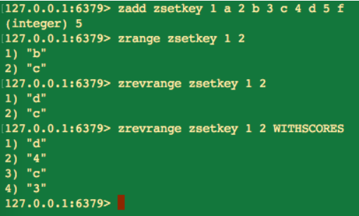 zrange key start stop [WITHSCORES]zrevrange key start stop [WITHSCORES]