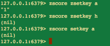在使用 zscore 命令时,如果 key 不存在,或者元素不存在时,该命令返回的都是(nil)。