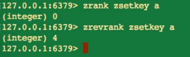 zrank 命令是从分数低到高排名,而 zrevrank 命令则恰恰相反,从高到低排名。有一点要特别注意, zrank 和 zrevrank 命令与 zscore 是命令不同的,前者通过分数计算出最后的排名,而后者则是直接返回当前元素的分数。